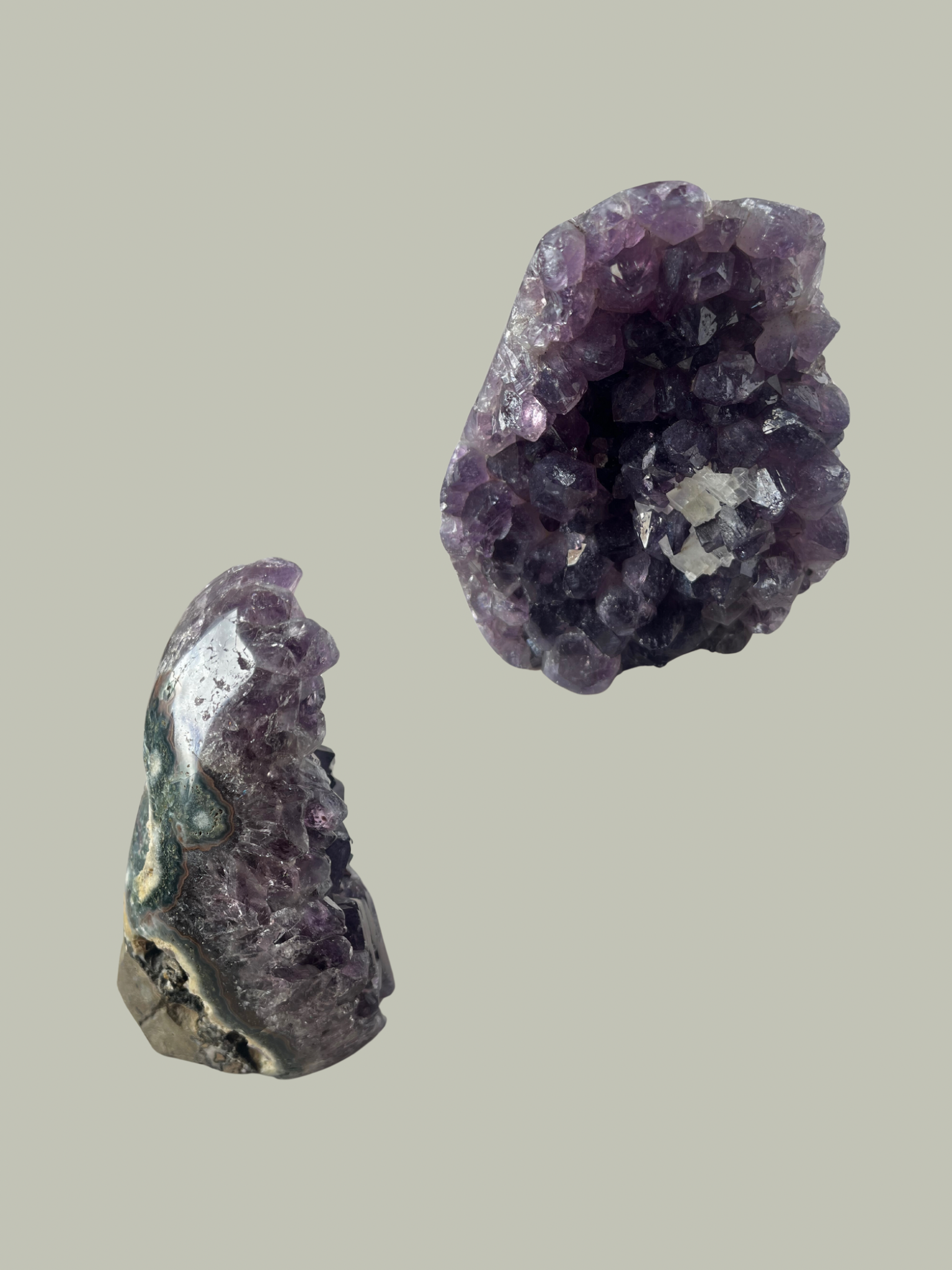 Deze ruwe amethist met een natuurlijk stavlak (vlak geslepen zijde) straalt een kalmerende, beschermende energie uit. De steen is van B-kwaliteit, wat betekent dat ze kleine imperfecties of kleurverschillen kan hebben — maar dat doet niets af aan haar krachtige werking. Integendeel: haar ruwe vorm maakt haar juist puur en authentiek.