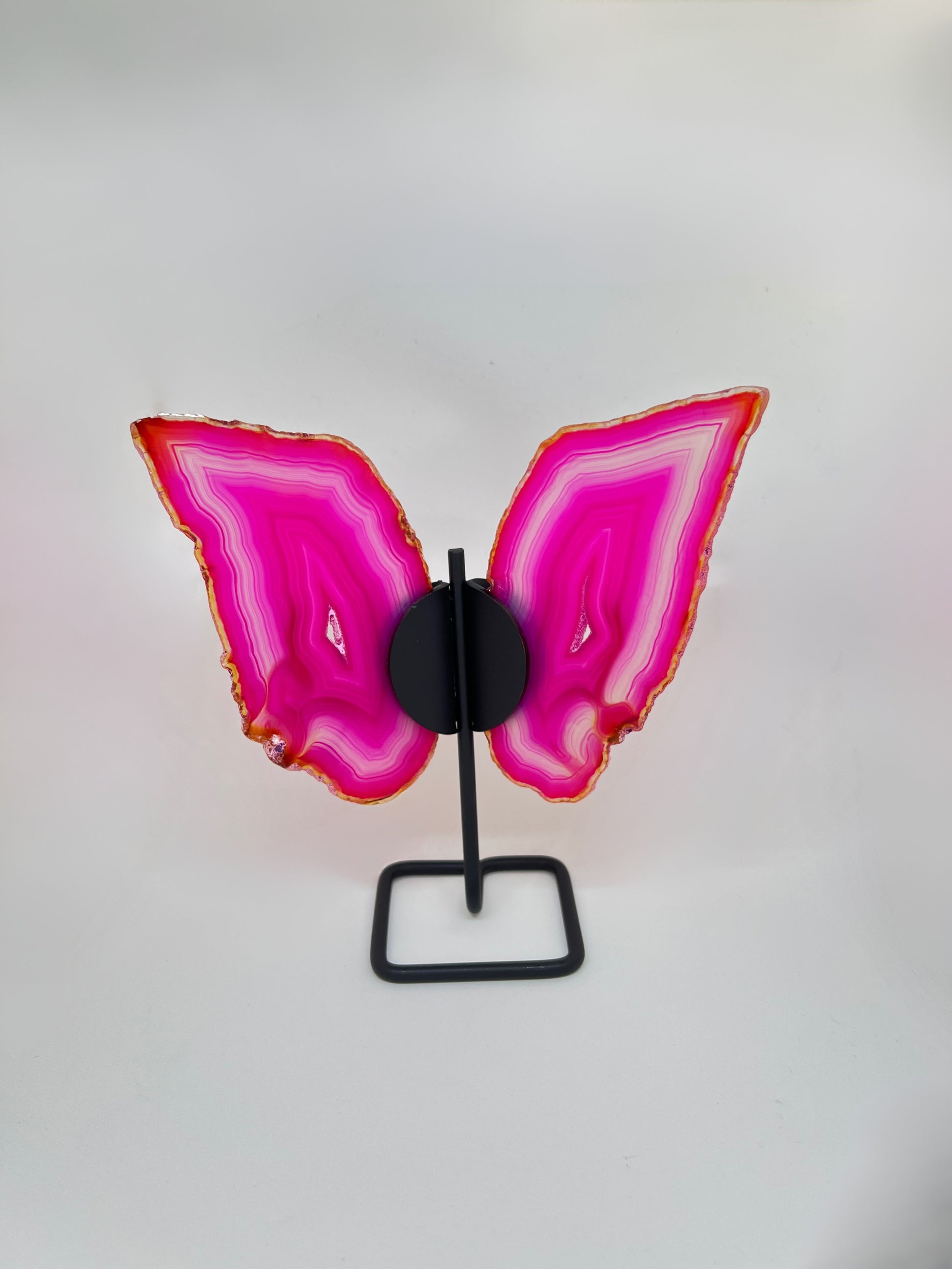 Deze betoverende roze agaat vlinder straalt liefde, zachtheid en vrouwelijke kracht uit. Roze agaat opent het hartchakra en nodigt je uit om in liefdevolle verbinding te blijven – met jezelf, je dierbaren en het universum. Ze helpt je om oude pijn los te laten en je hart opnieuw open te stellen voor vertrouwen en vreugde. Met haar zachte kleur en vloeiende lijnen brengt deze vlinder een kalmerende energie die troost en vreugde schenkt.