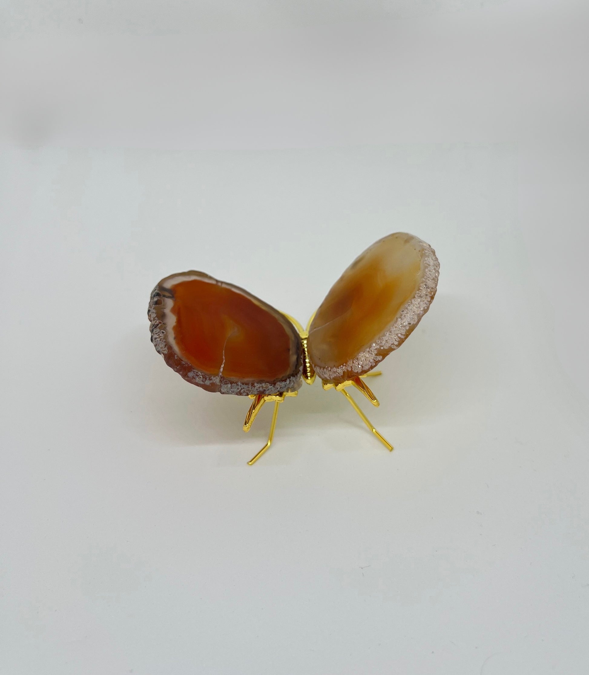 Laat je inspireren door de vurige energie van deze prachtige agaatvlinder. Met haar diepe rood- en oranjetinten brengt ze warmte, passie en levenskracht in je ruimte. De gouden afwerking versterkt haar zonnevibe – perfect voor wie meer vuur en creativiteit wil activeren.