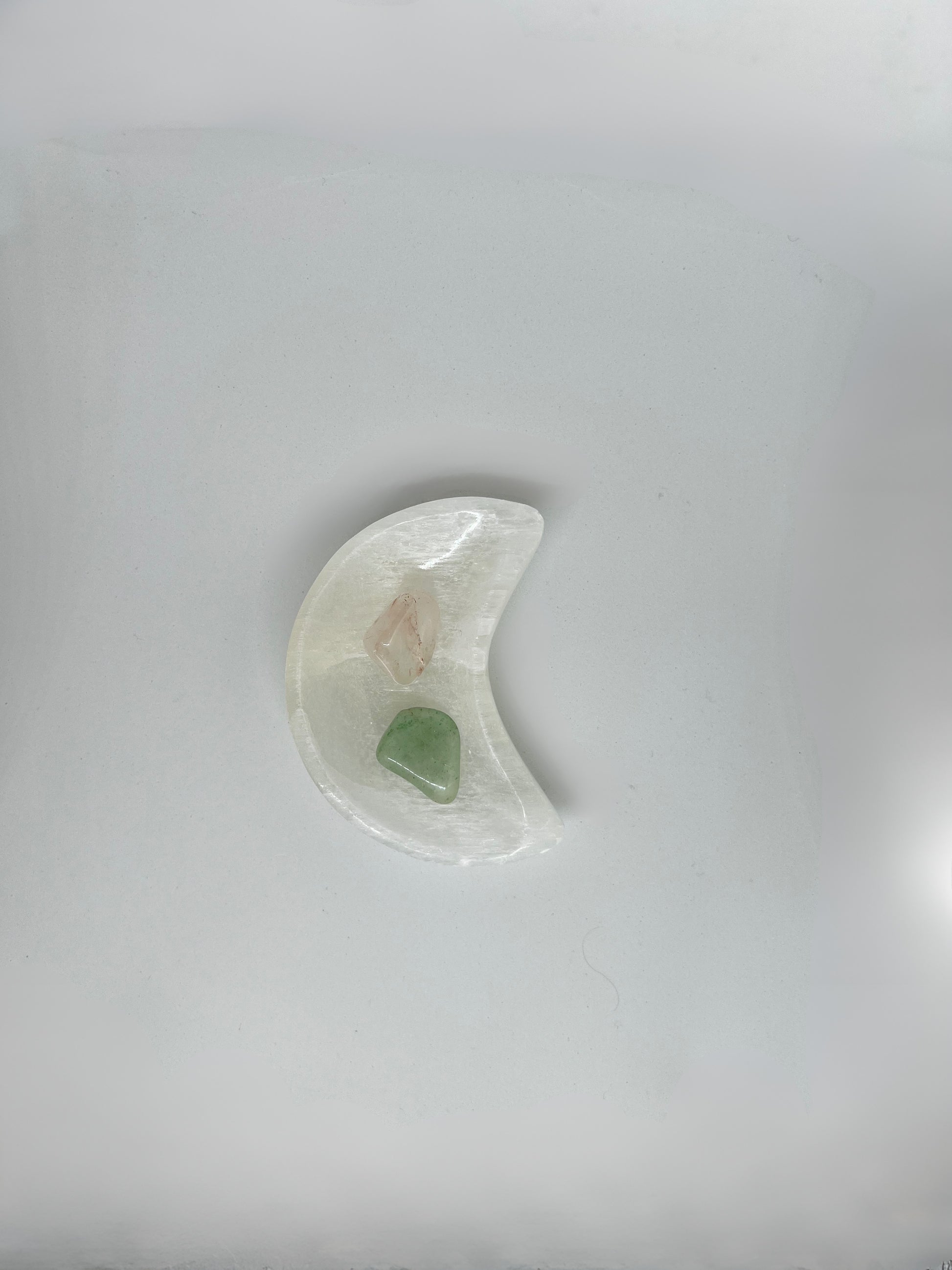 De maanvorm versterkt de connectie met vrouwelijke energie, intuïtie en de cyclus van het leven. Perfect voor op je altaar, nachtkastje of als centerpiece in je selfcare-ritueel.